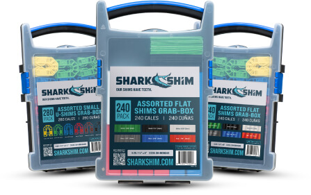 | SH-FGB240 | Assorted Flat Shims Grab-Box (1∕32”, 1∕8”, 3/16” & 1/4”) | 4” x 1 3∕4” x (1∕32” − 1/4”) | 240 | 10 |